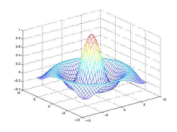 Per valutare la funzione bidimensionale sinc , sin(r)/r, lungo le due direzioni x e y